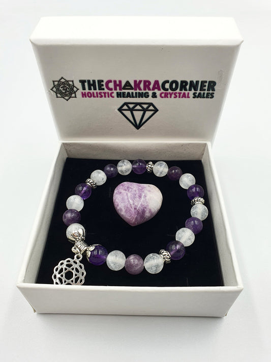 Loss and Grief Support Crystal Healing Bracelet with Chakra Charm (Amethyst, Lepidolite and Selenite)
