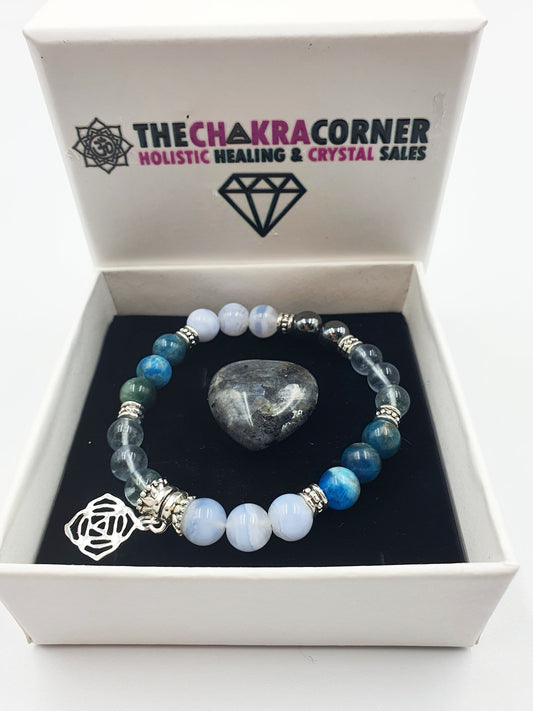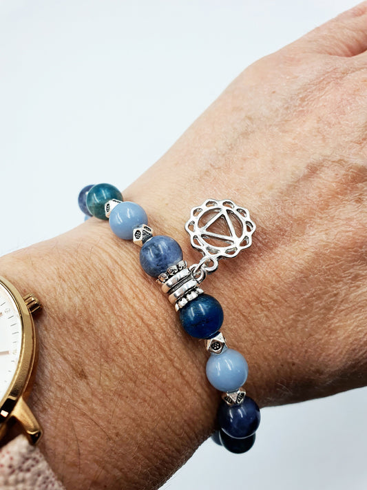 Weight Loss and Maintenance Crystal Healing Bracelet with Chakra Charm (Angelite, Blue Apatite and Sodalite)