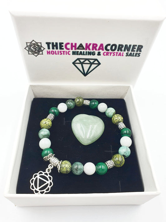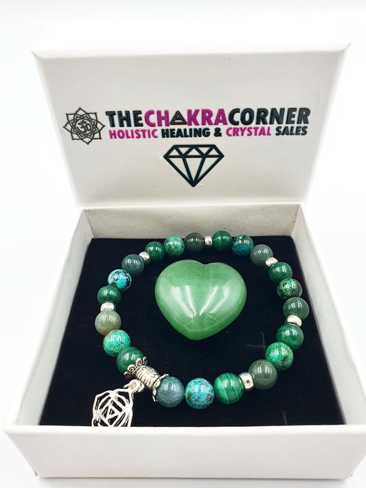 Diabetes Support Crystal Healing Bracelet with Chakra Charm (Emerald, Jade, Malachite and Serpentine)