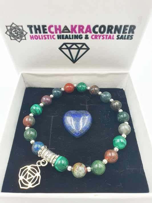 Eczema Relief Support Crystal Healing Bracelet with Chakra Charm (Azurite, Malachite, Hematite and Green Aventurine) - Custom sizes Avail.