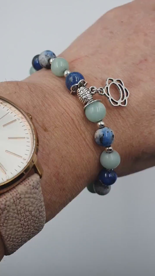 Calming the Mind Crystal Healing Bracelet with Chakra Charm (Lapis Lazuli, Caribbean Calcite and K2)