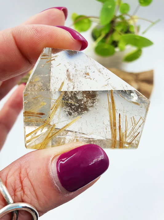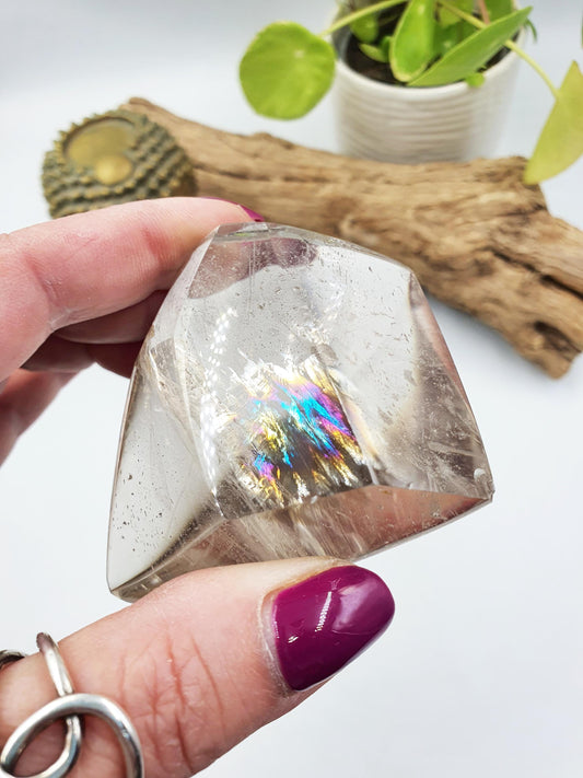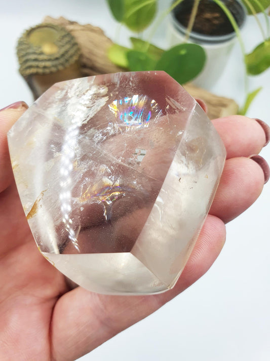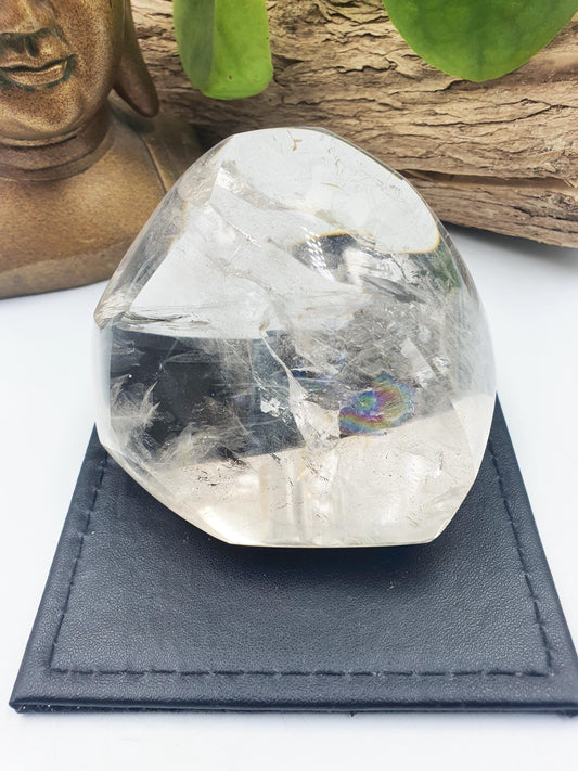 Clear Quartz Freeform with large rainbow, shimmering inclusions and golden healer