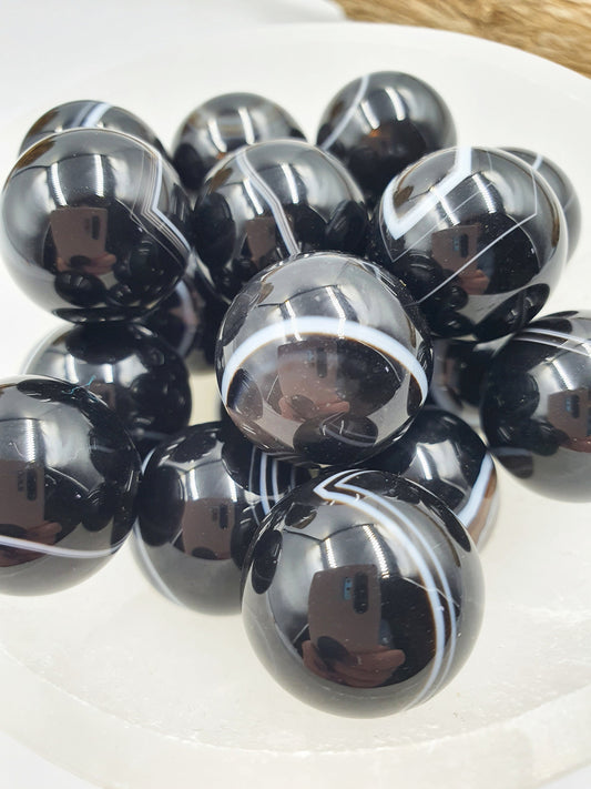 Black Banded Agate Mini Crystal Sphere - approx 20mm