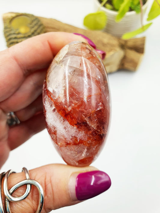 Fire Quartz (Hematoid) Palm Stone with rainbow flashes
