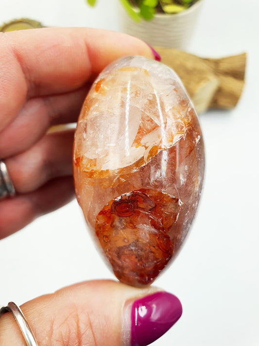 Fire Quartz (Hematoid) Palm Stone with rainbow flashes