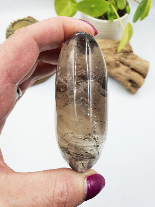 High Grade Smoky Quartz Palm Stone with Rainbows