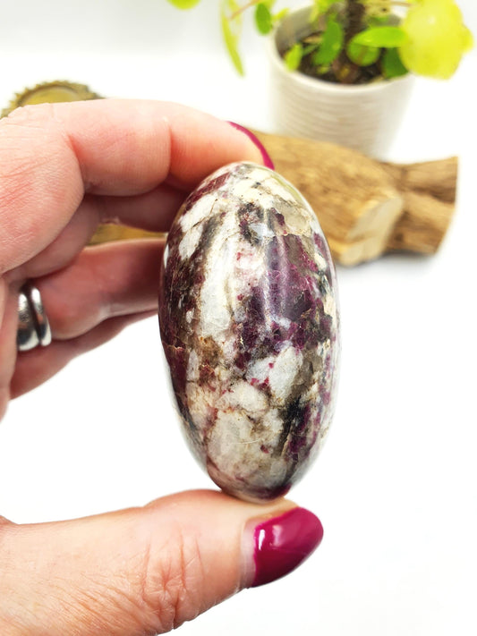 Large Plum Blossom Tourmaline Palm Stone (Rubellite)