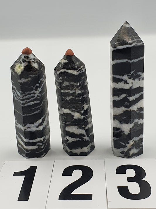 Zebra Jasper Tower - Three Available - 8.7 to 10.6 cm tall.