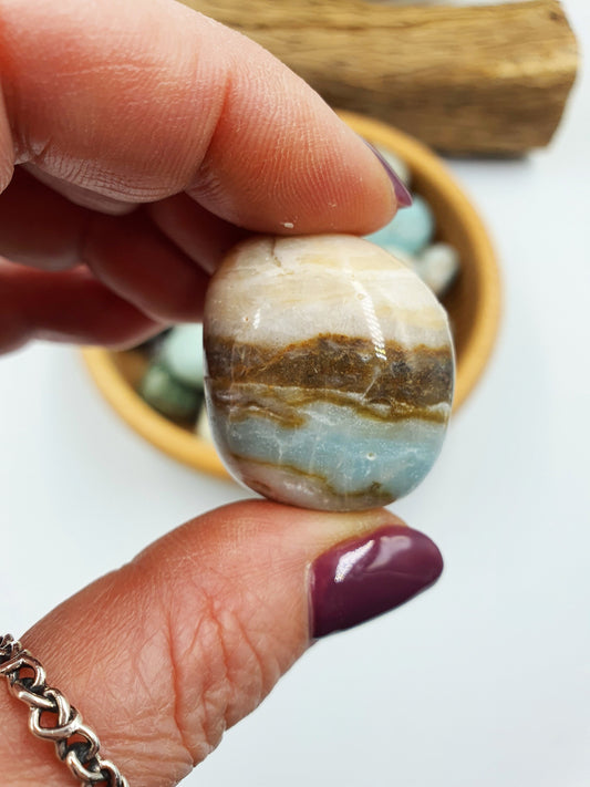 I received my Blue Apatite Palm Stone today. It far exceeded my expectations. The size and colours are fabulous. I could feel it's energy immediately as soon as I held it. Delighted to find a beautiful tumble stone included as a gift.