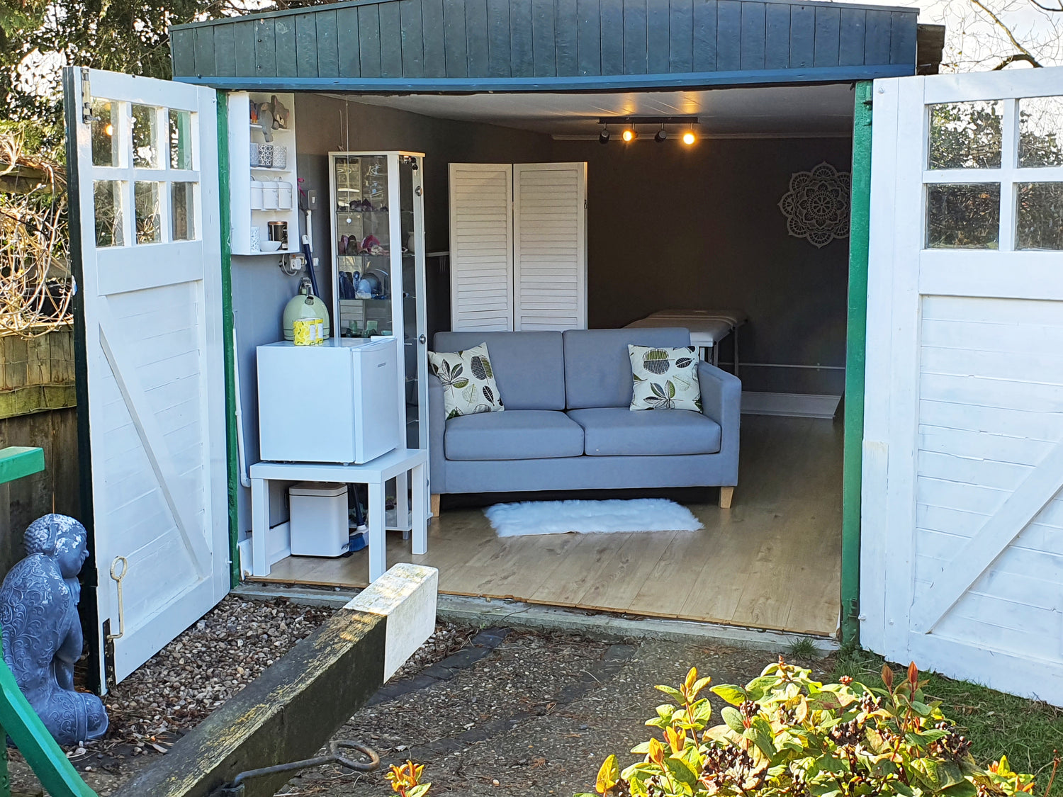 Cat carries out Chakra Cleanse Sessions in our therapy room, which is nestled under large trees at the bottom of our garden.