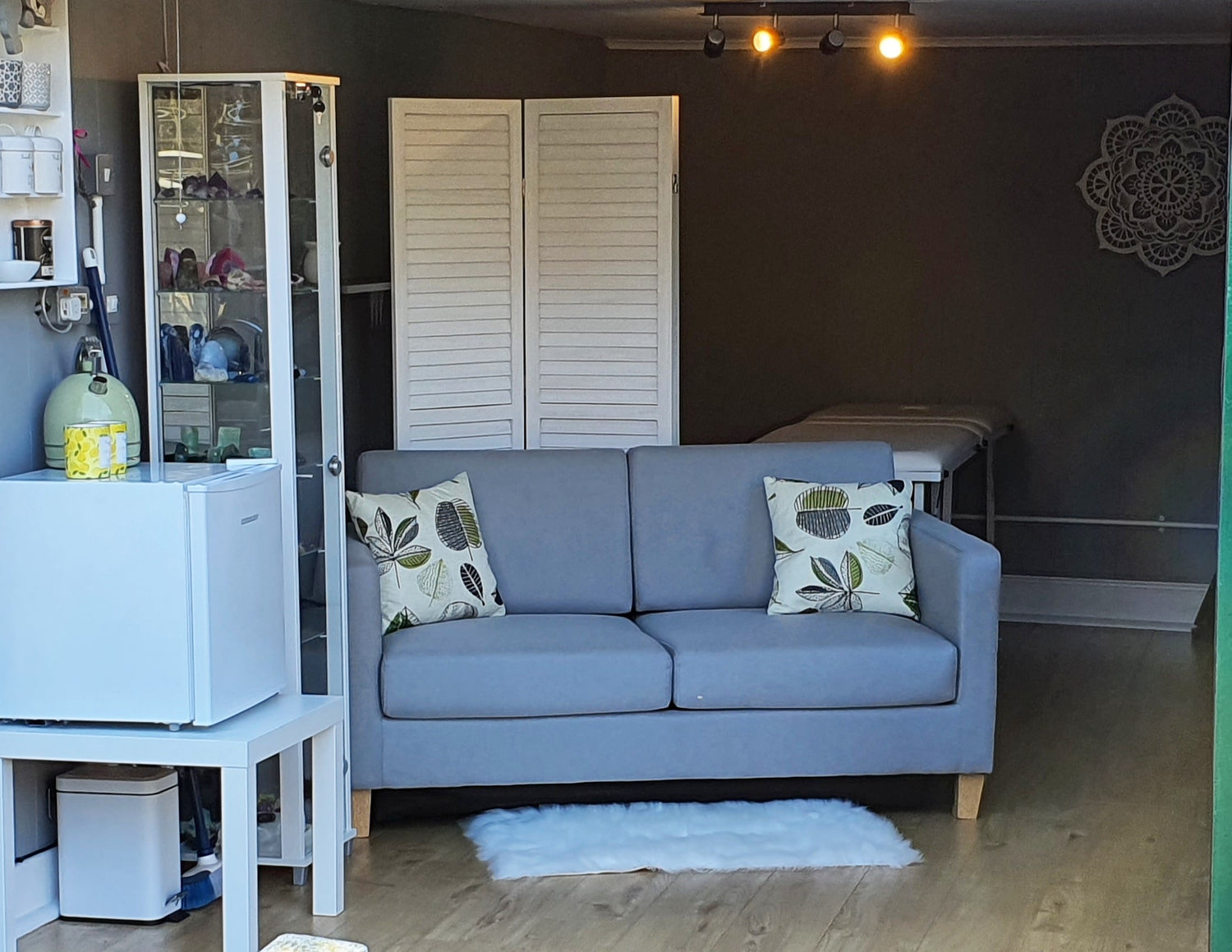 We'll take you through our beautiful garden to our therapy room, which is an old converted garage nestled under large trees. It really is a safe space to truly relax and feel connected with mother nature.