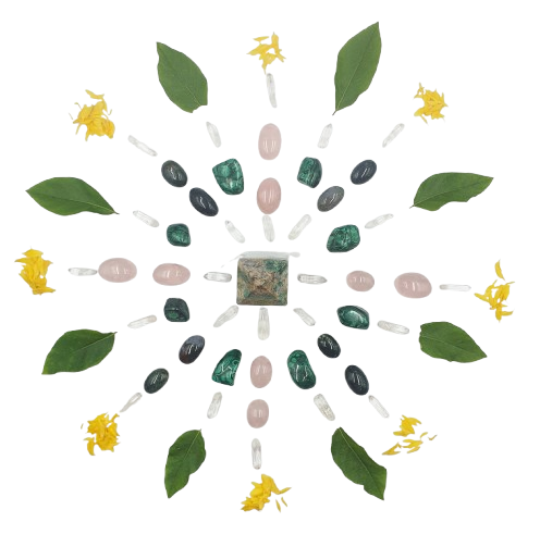 - Place your center stone (Emerald or Green Aventurine) in the middle - this represents your core intention (love, abundance, or growth)