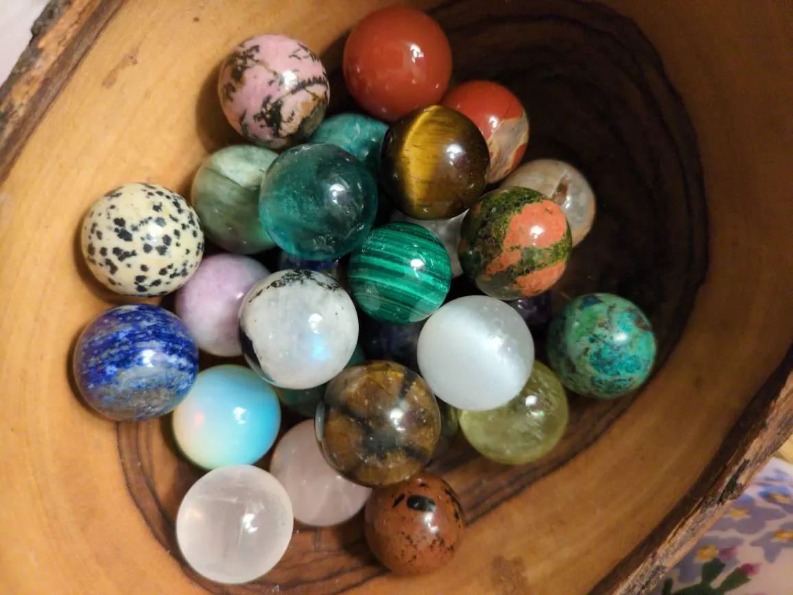 My third order within a couple of weeks - I can't resist these gorgeous little spheres! I've built up quite a collection now and they are so soothing to play with when I'm anxious or stressed. I could look at the beautiful colours for hours. They always arrive really quickly too, in a pretty bag with a little note and often a bonus tumbled stone in there too. Such a treat to receive. Many thanks.