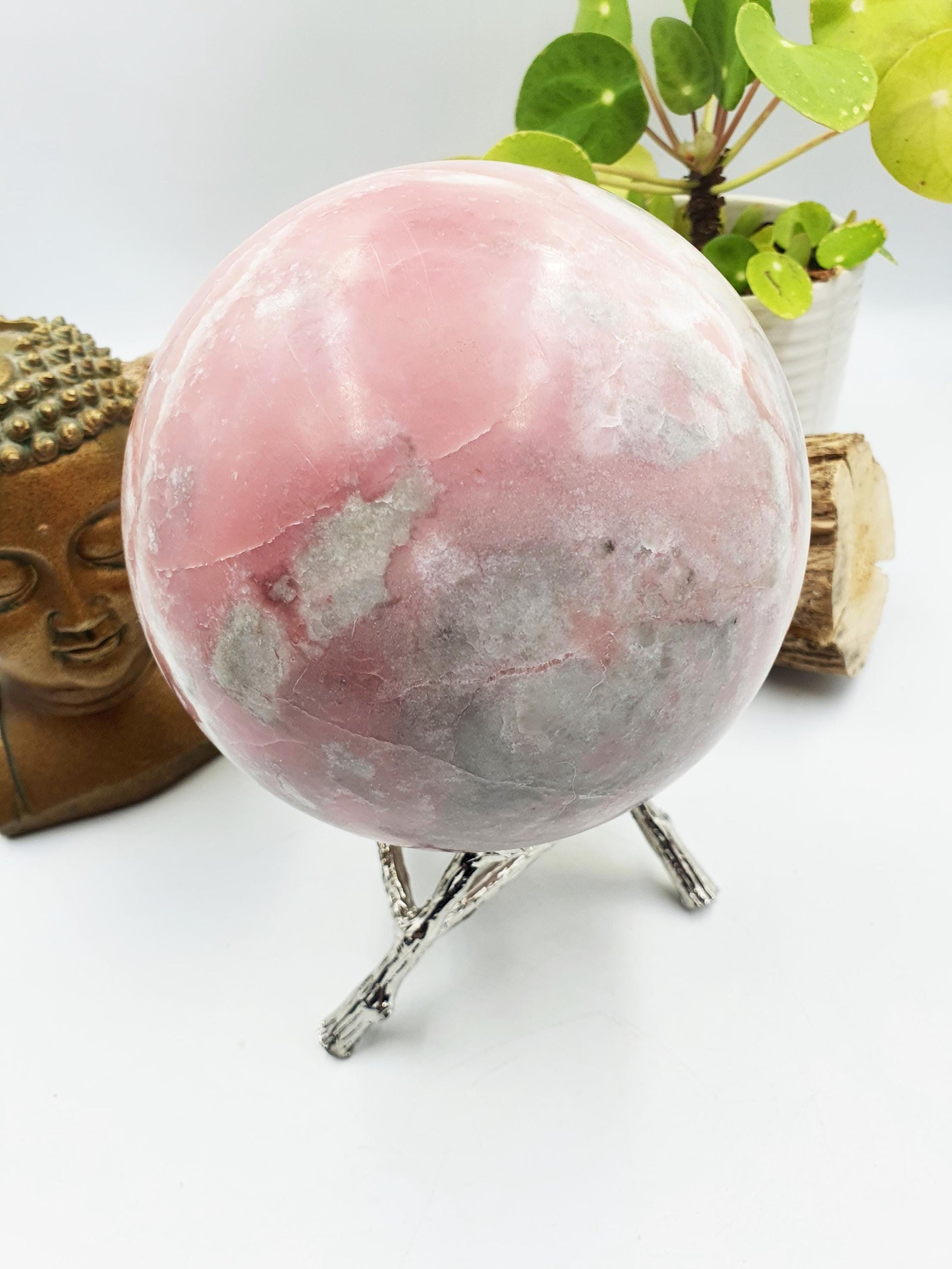 This Pink Opal Sphere is so beautiful with its pastel pink and white and grey banding patterns, it brings so much calm energy.